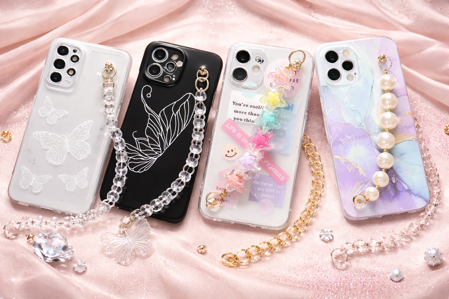 Pink Butterfly Creame Background Chain Phone Case